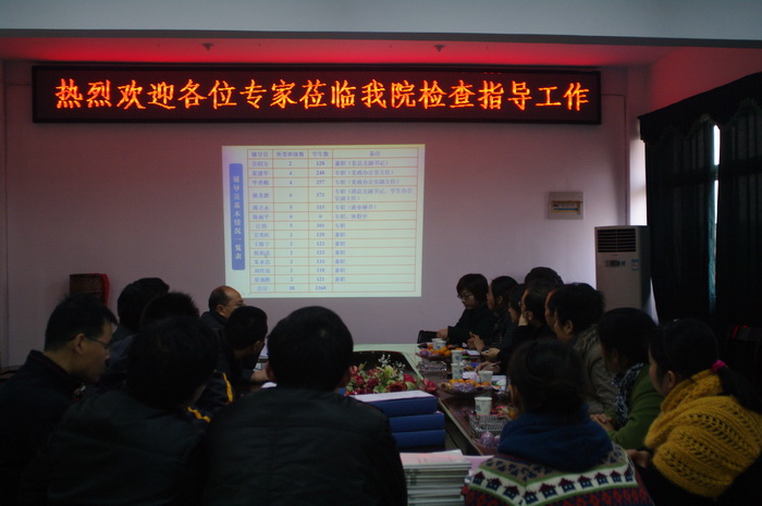 12月6日下午,校学生教育管理工作委员会专家组来我院检查学生“四成”教育预警工作。学生处副处长金文斌同志主持了汇报会。我院党政领导及全体专职辅导员参加了汇报会。