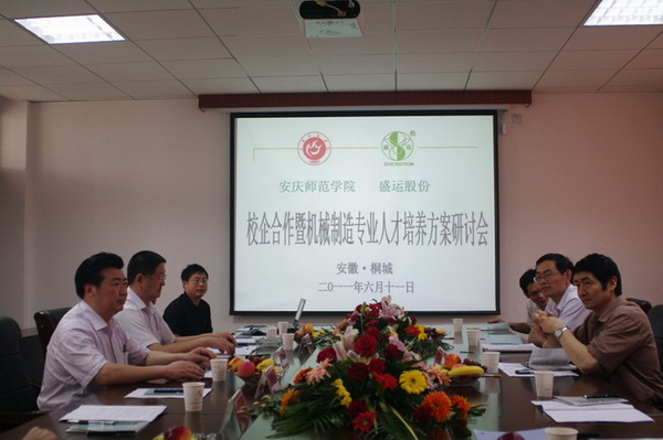 6月11日上午,我校在安徽省桐城市安徽盛运机械股份有限公司总部召开机械设计制造及其自动化专业人才培养方案研讨会。党委委员、副院长张群,安徽盛运机械股份有限公司总裁王仕民出席研讨会。教务处、新校区建设办、物理与电气工程学院等相关职能部门和院系负责同志,安徽盛运机械股份有限公司高管及技术部工程师参加了研讨会。研讨会由物理与电气工程学院院长张杰主持。