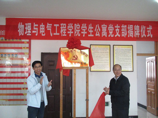 成立大会上,党校常务副校长、组织部副部长戴卫义宣读了《关于同意成立安庆师范学院物理与电气工程学院学生公寓党支部的批复》,学院党总支副书记夏建华宣读了学生公寓党支部的工作职责。学生公寓临时党支部书记任坤同学作了表态发言。(操龙德)