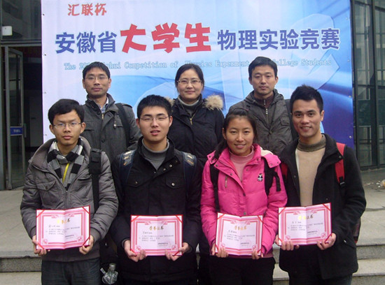 由安徽省物理学会主办的首届大学生物理实验竞赛决赛于12月2日在安徽大学笃行楼落下帷幕。由我院组队代表学校参赛的4名同学在决赛中均获得优异成绩。2010级物理学专业(1)班季东、毕铁柱、王雅南三位同学分获一、二、三等奖,2010级物理学(2)班宋丛政同学荣获优秀奖。此次比赛共有来自安徽大学、安徽师范大学、合肥工业大学、解放军电子工程学院等省内16所高校的64名选手参加。