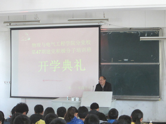 开学典礼上,分党校培训班班主任操龙德同志宣读了本期培训班教学安排和培训班学规。2012级机械专业王峰同学作为学员代表发言。