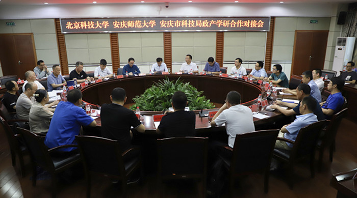 5月25日,我校与安庆市政产学研合作对接会在龙山校区行政楼二楼圆桌会议室召开。北京科技大学科学技术研究院院长刘雪峰、沿海研究院院长何新波,安庆师范大学科研处处长陈二祥,物理与电气工程学院党委书记江贵生,安庆市宜秀区、迎江区、大观区三区科技局局长、24家企业负责人以及物理与电气工程学院教师代表参加了会议。会议由安庆市科技局局长吴曙主持。