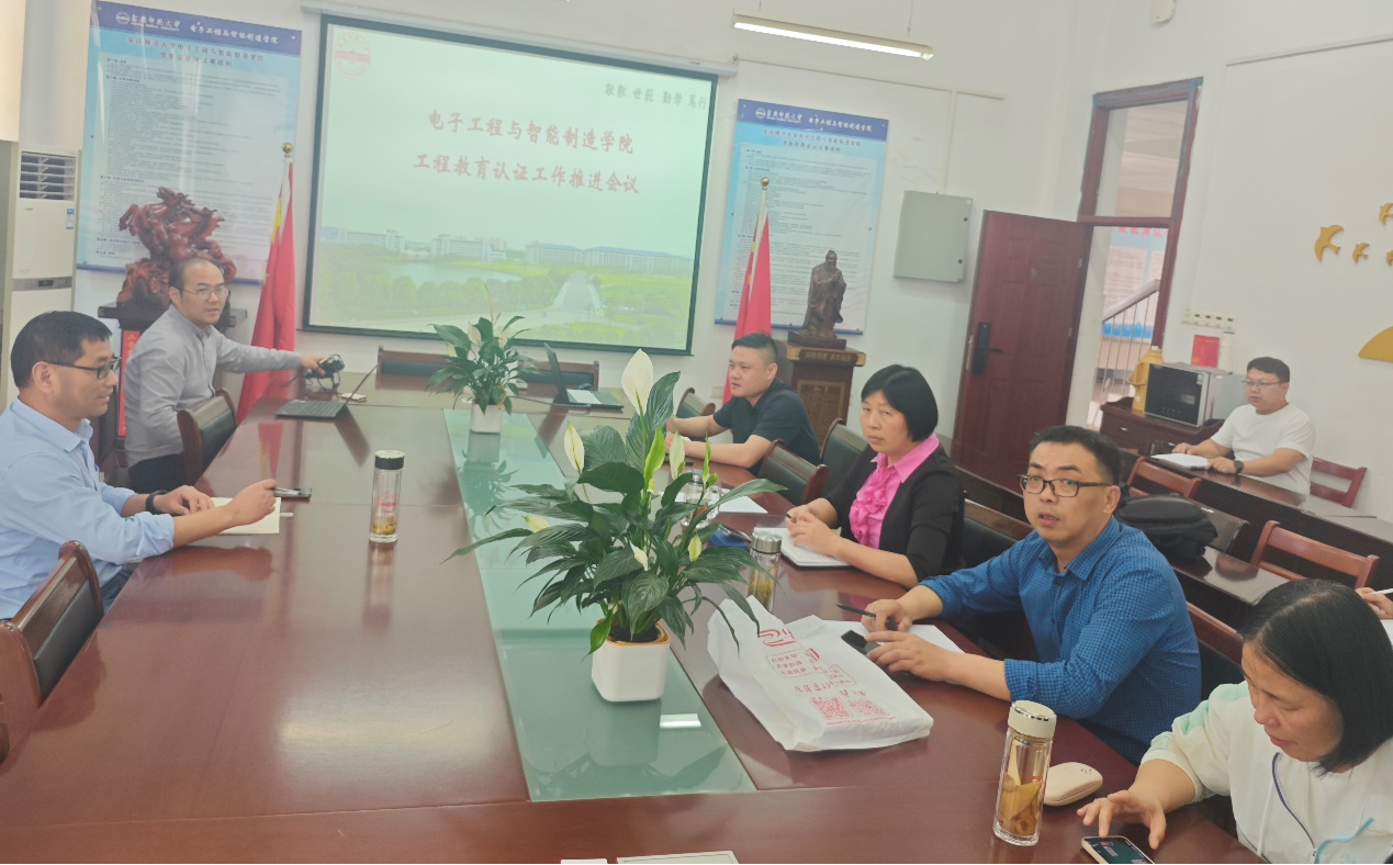 4月29日,电子工程与智能制造学院在稼先楼南119会议室召开工程教育认证工作推进会,邀请安徽大学光电信息科学与工程专业负责人胡志家教授进行现场指导。会议由学院副院长章礼华主持,光电信息科学与工程、微电子科学与工程和自动化专业负责人及教师代表参加会议。