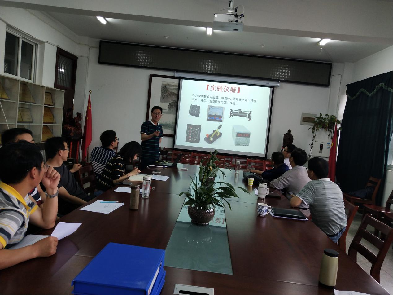 2019年5月15日下午,我院教工物理学党支部在学院大会议室开展5月党日活动。本次活动结合支部党员的职业特点,以“大学物理实验课教学观摩”为主题,观摩了李伶俐和张平伟两位党员老师的大学物理实验课教学。为了充分发挥党员教师引领示范作用,展示党员风采,努力提高教师实验课教学水平,两位党员老师积极报名,认真准备,将于本周末代表学校参加2019年全国高等学校物理基础课程青年教师讲课(大学物理实验课程)比赛安徽省初赛。与会党员学习了两位老师的授课技巧和经验,同时也提出了很多宝贵的意见,集整个支部党员教师之力打造高水平的物理实验课,争取在比赛中取得好成绩。