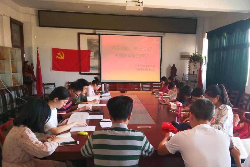 为庆祝新中国成立70周年,进一步加强党员理想信念教育, 根据“不忘初心、牢记使命”主题教育工作安排,9月30日,学生物理学党支部在稼先楼北218会议室开展“不忘初心、牢记使命”主题教育,本支部全体党员参加。