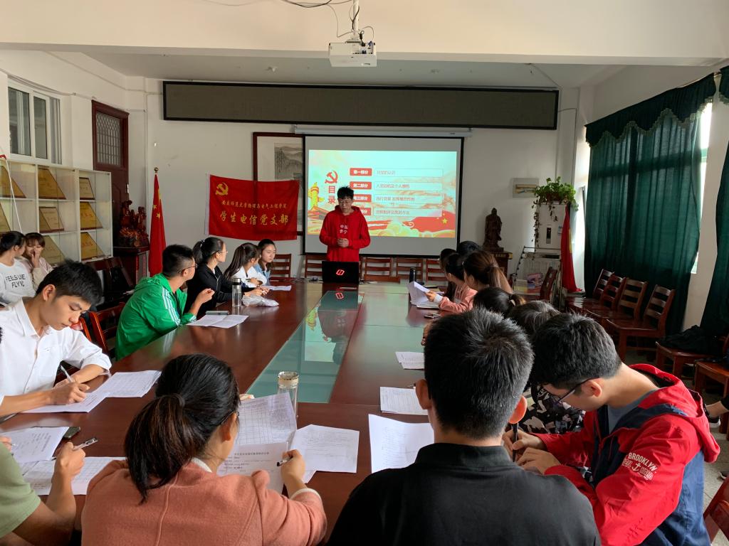 为进一步加强基层党组织建设,严把学生党员发展的质量关,有效提升学生党员发展对象的思想政治素养,保持党员队伍的先进性与纯洁性,10月11日,我院学生电信党支部举行了发展对象公开答辩会。学生电信支部党员、11名发展对象和部分入党积极分子参加了会议,会议由支部书记程培培主持。