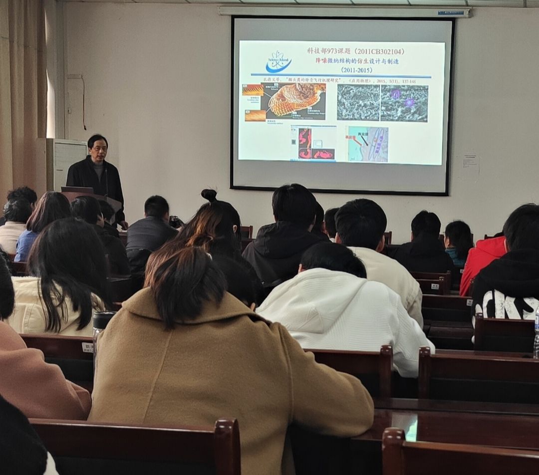 孔德义先结合自身从事MEMS传感器与微系统研究工作经历,介绍了MEMS技术在微穿孔吸声降噪及低噪音无人机研发领域的应用,并分享了近年来课题组在仿生攀爬和仿生弹跳机器人方面的研究进展。