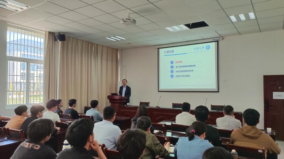 柴教授围绕动态过程非平稳监测信号分析与数据驱动的故障诊断等问题,介绍了非平稳监测信号的征兆模式分析与频域特征提取方法、工业过程异常工况在线识别、预警和故障诊断技术,最后对工业过程智能诊断技术的发展前景进行了展望。报告人简介:柴毅,重庆大学自动化学院二级教授,博导,复杂系统安全与控制教育部重点实验室主任,中国自动化学会过程控制专委会常务委员、中国人工智能学会智能空天系统专业委员会副主任、重庆市人工智能学会副理事长等。长期从事信息处理融合与控制、故障诊断及安全性评估、智能系统理论及其应用研究。作为主持人现已承担、完成了国家自然科学重点基金、联合重点基金、面上基金、国家“863”高技术研究计划项目、国家重点研发计划课题等40余项科研项目,在国内外发表学术论文160余篇,撰写专著3部。获得省部级一等奖3项,国家级教学成果二等奖1项,授权发明专利60余项。(撰稿/摄影:查申龙 审核:詹文法)