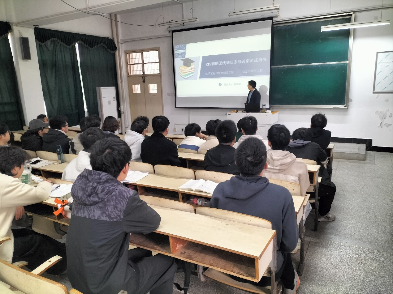 11月17日,电子工程与智能制造学院胡浪涛博士在稼先楼北100教室作了题为“RIS辅助无线通信系统波束形成研究”的学术报告,通信工程相关专业部分老师和同学聆听了报告。