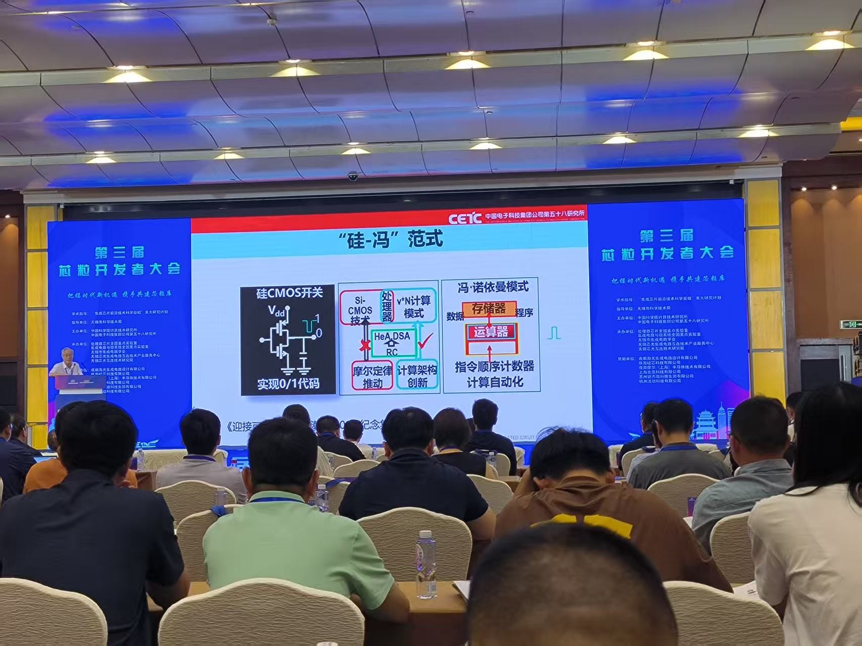 7月15日,由中国科学院计算技术研究所和中国电子科技集团公司第五十八研究所举办的第三届“芯粒开发者大会”在无锡举行。会议开幕式由中国电科首席专家魏敬和主持,许居衍院士致开幕辞。来自北京大学、东南大学、上海交通大学、清华大学、南京邮电大学、中国科学院计算技术研究、安庆师范大学、中国电子科技集团公司第五十八研究所等单位的50多名专家做报告。安庆师范大学电子工程与智能制造学院副院长应邀出席会议并发言。